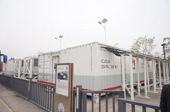 接下來(lái),我們又參觀了華為的集裝箱數(shù)據(jù)中心——標(biāo)準(zhǔn)、先鋒、創(chuàng)新機(jī)房的代表。集裝箱數(shù)據(jù)中心,本來(lái)只是因?yàn)槿A為企業(yè)數(shù)據(jù)中心機(jī)房面積的限制,而企業(yè)又迅速發(fā)展機(jī)房容量不夠用,傳統(tǒng)的數(shù)據(jù)中心機(jī)房建設(shè)周期通常在兩年以上,遠(yuǎn)不能滿足流媒體等數(shù)據(jù)業(yè)務(wù)井噴式的發(fā)展需求,集裝箱式的數(shù)據(jù)中心解決方案應(yīng)運(yùn)而生。華為的集裝箱式數(shù)據(jù)中心產(chǎn)品分為兩大類標(biāo)準(zhǔn)產(chǎn)品:一類稱為“All-in-one式集裝箱”,即一個(gè)標(biāo)準(zhǔn)集裝箱內(nèi)集成所有的基礎(chǔ)設(shè)施;另一類稱為“集群式集裝箱”,即由不同的箱體形成制冷、供配電、設(shè)備安裝等功能模塊,進(jìn)行靈活組合應(yīng)用。作為一種新型的建設(shè)模式,集裝箱式數(shù)據(jù)中心具備如下特點(diǎn):